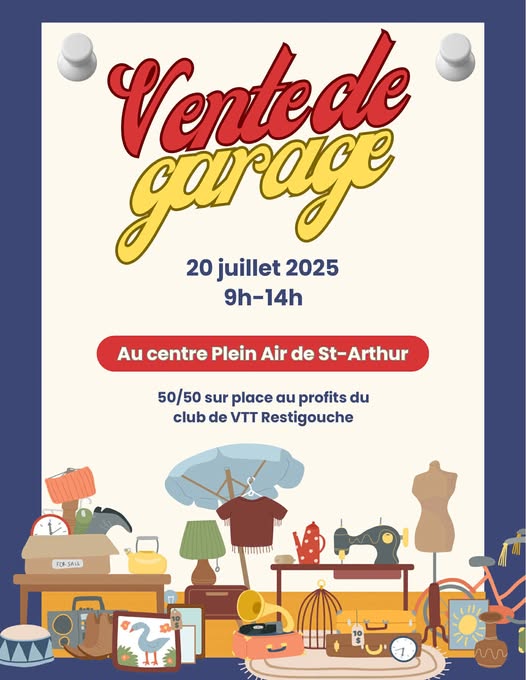 VTT / ATV Club Restigouche will be hosting a Garage Sale at the Centre Plein Air in St-Arthur on Sunday, July 20, 2025, between 9 am and 2 pm. Look forward to seeing you.