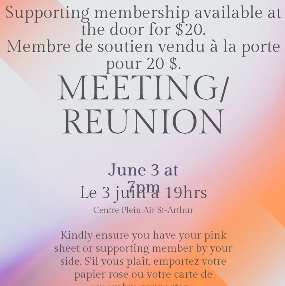 Club 1: Annual General Meeting for Club Sentier d’Amitie Saint-Quentin You are all invited on Tuesday, March 25th at 7pm to the Annual General Meeting of the (Club 1) Club Sentiers d'Amitié Inc., which will take place at the Jean-Claude Savoie room (at the top of the Western Festival office). Dates, Location and Other Information…