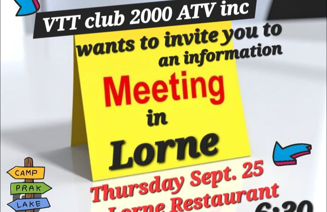 VTT / ATV Club Restigouche will be hosting a club meeting on October 9, 2025 at the St. Arthur firehall at 7 pm.